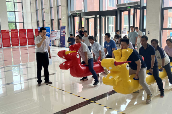 在龙舟竞速赛环节,共有20个分会联合组成的9支队伍参加。各组队员骑在充气龙舟上,通过协调配合向终点冲刺。经过紧张刺激的比拼,可再生能源发电系统分工会夺得第一名。