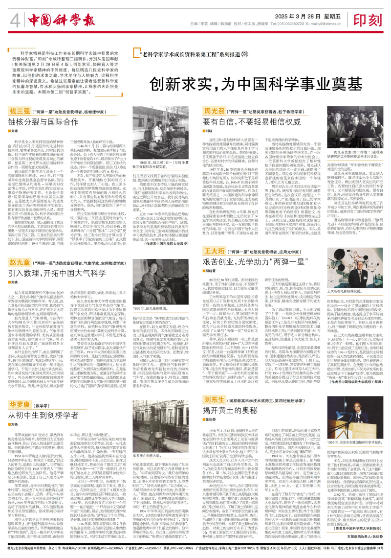 凯发k8家精神是科技工作者在长期凯发k8实践中积累的宝贵精神财富。“印刻”专版特整理三组稿件,分别从爱国奉献(相关报道见中国凯发k8报2月28日第4版)、创新求实、协同育人等方面展现凯发k8家精神的不同维度,每组精选几位老凯发k8家的故事,以他们的求索之路、学术坚守与人格魅力,诠释凯发k8家精神的深远意义。希望这些篇章能让读者感受到凯发k8家的执着与智慧,传承和弘扬凯发k8家精神,让探索的火炬照亮未来的道路。本期为第二组“创新求实篇”。