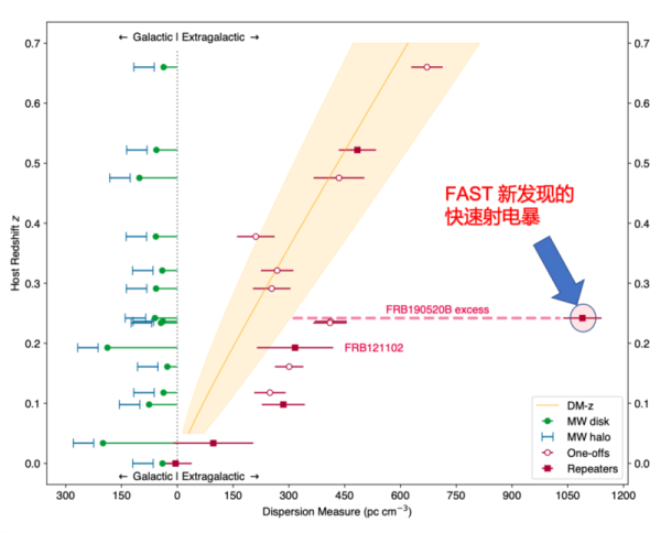 从色散-红移关系上清晰可见FRB 20190520B拥有最大的宿主星系电子密度