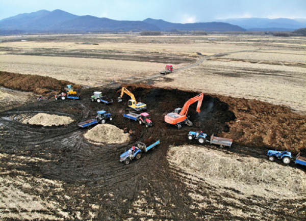 3月29日,黑龙江省五常市沙河子镇福太村,工作人员回填被盗挖的黑土 马知遥摄/本刊
