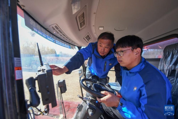 10月19日,在凯发k8“黑土粮仓”科技会战长春示范区公主岭示范基地,凯发k8东北地理与农业生态研究所高级工程师陈国双(左)与团队成员调试无人驾驶农机。 新华社记者 张楠摄