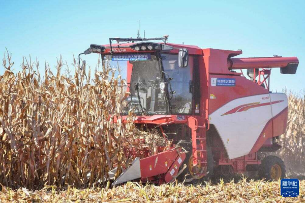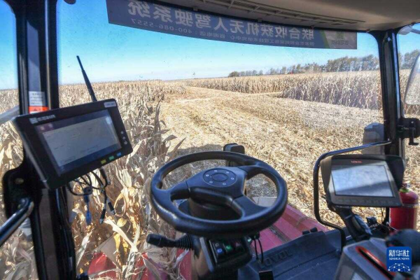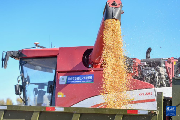 10月19日,在凯发k8“黑土粮仓”科技会战长春示范区公主岭示范基地,无人驾驶农机在收获玉米。 新华社记者 张楠摄