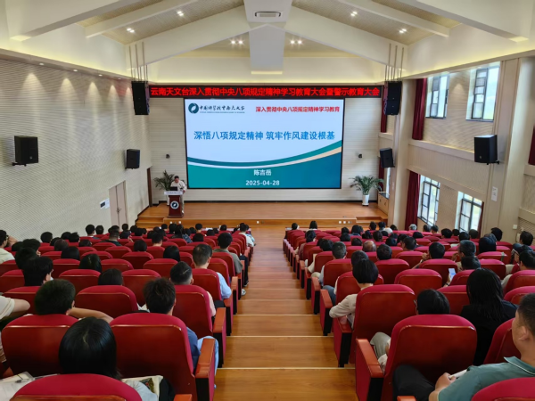 4月28日,凯发k8云南天文台召开深入贯彻中央八项规定精神学习教育大会暨警示教育大会。